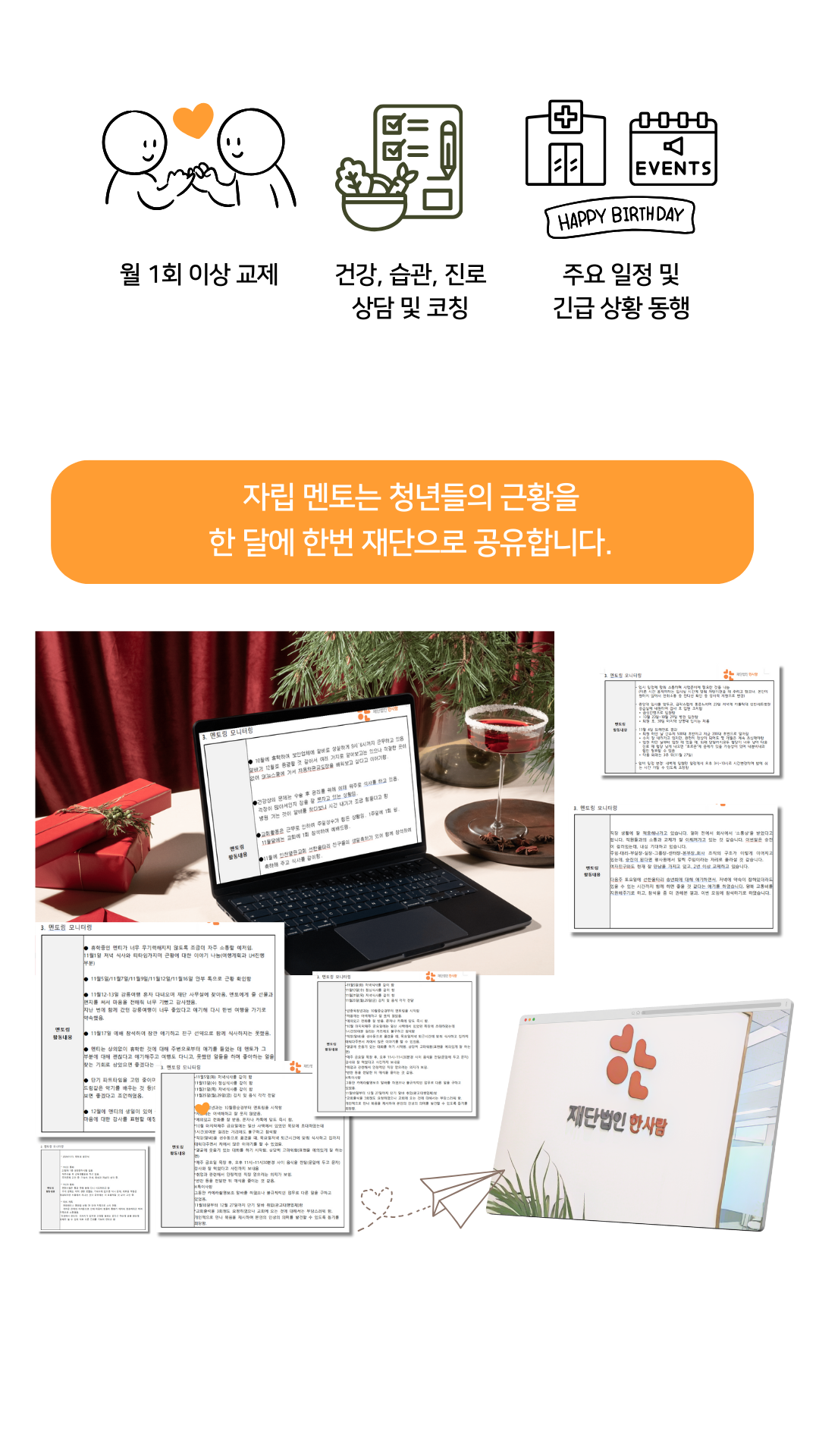 청년 한 사람의 곁에서 삶을 나누고 필요한 도움을 함께 찾아가는 따뜻한 동행입니다.