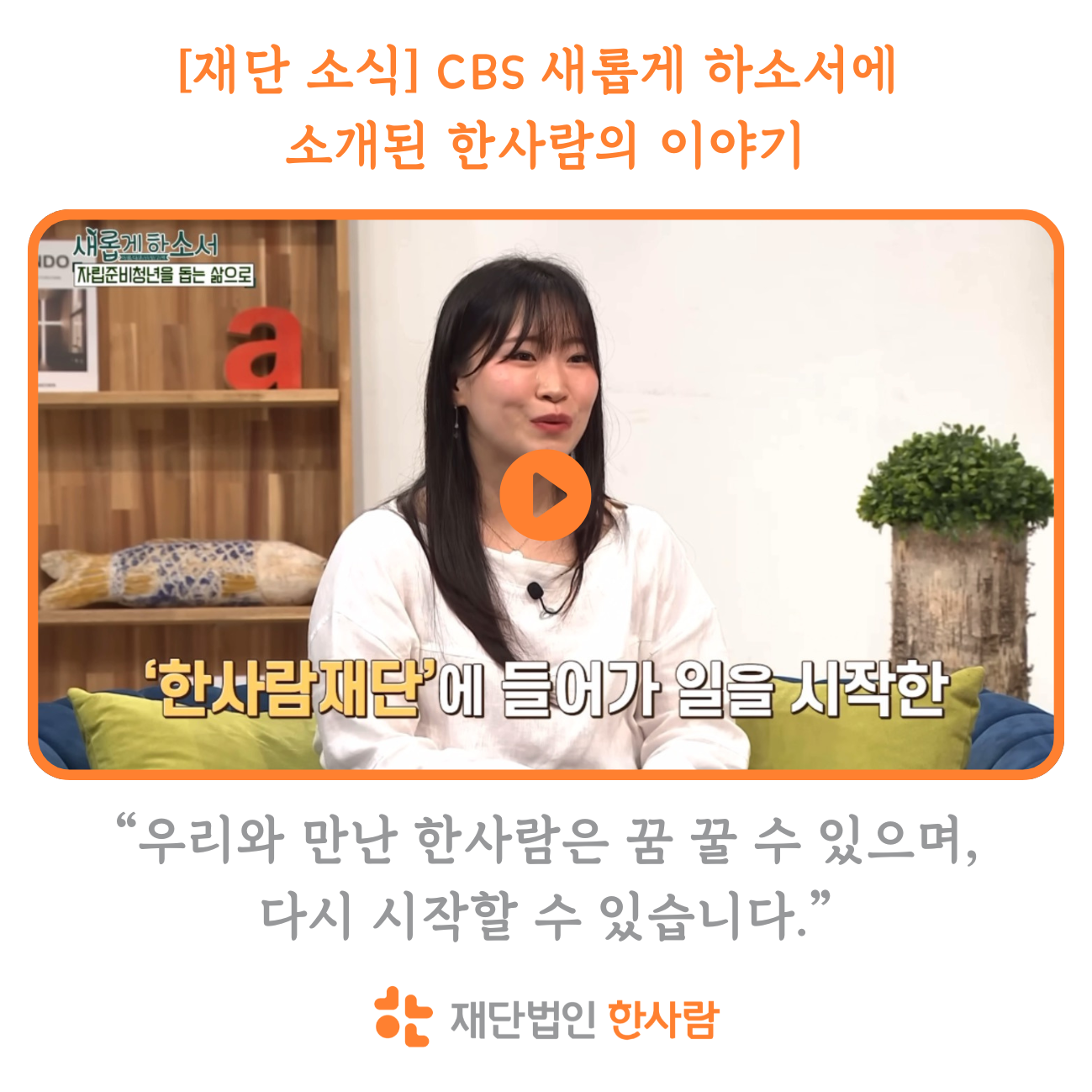 동시에 지금은 재단의 동행자로서 한사람재단과 함께하고 있습니다. 최근 CBS <새롭게 하소서>에 출연해 저의 이야기를 나누며, 한사람재단의 비전과 철학이 왜 ‘한 사람’으로부터 출발하는지 나누었습니다.