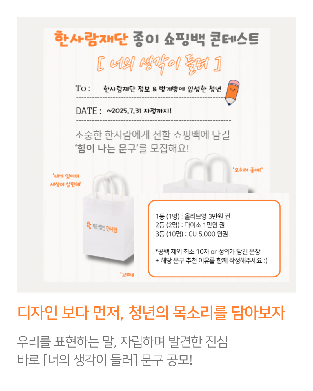 한사람재단은 앞으로도 청년들의 목소리에 귀기울이며 동행하겠습니다.