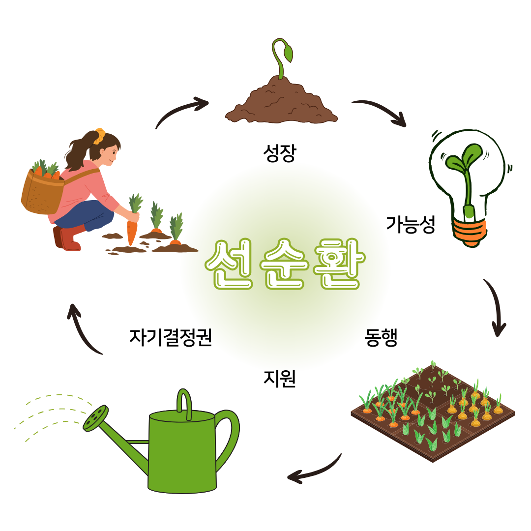 - 청년이 스스로 선택하고 결정할 수 있도록 역량을 키워주며, 삶을 주도할 힘을 길러준다.